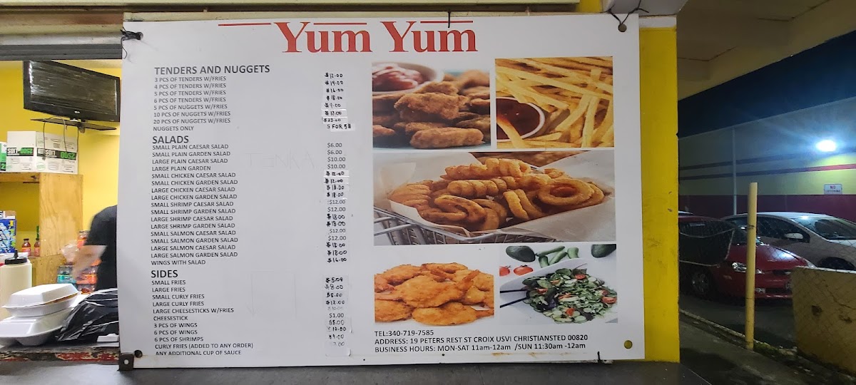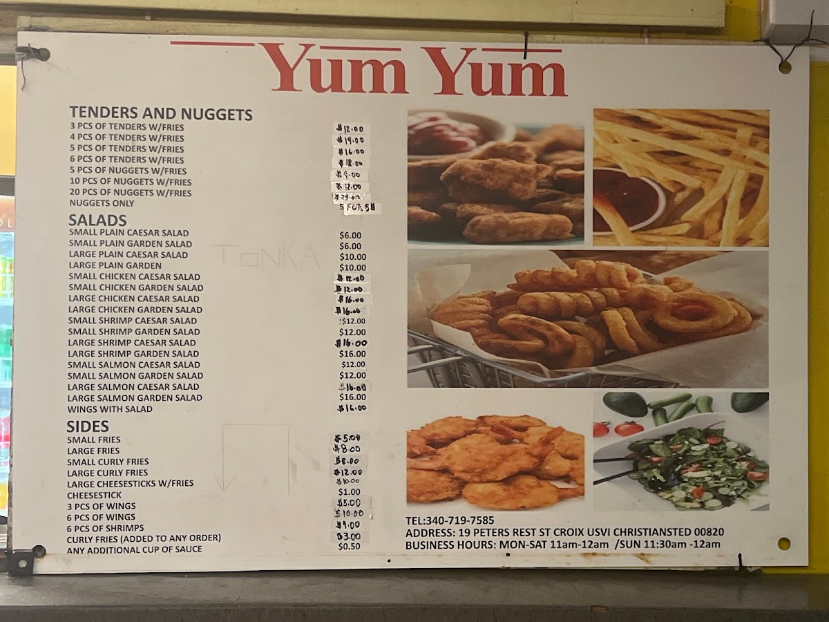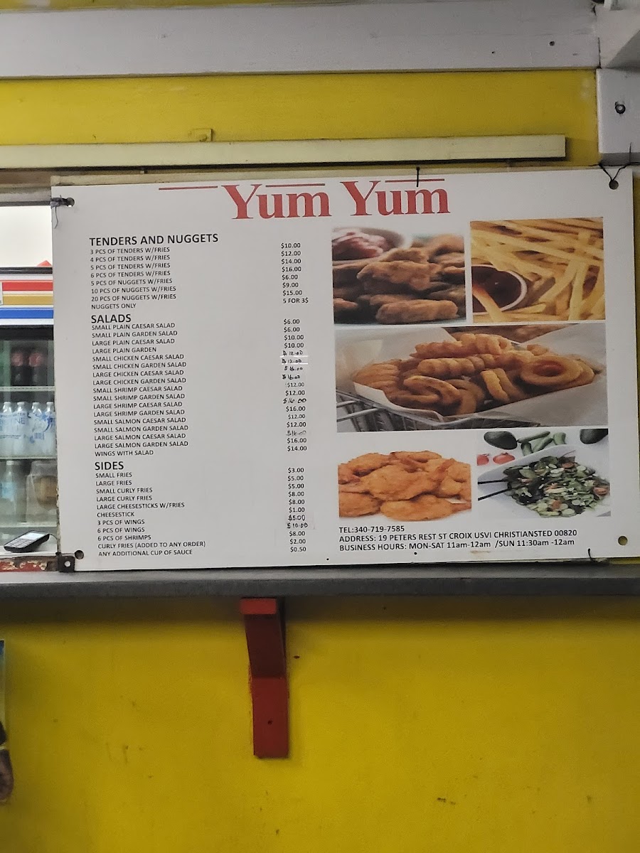 The menu at Yum Yum Fast Food offers a straightforward selection of casual, satisfying dishes that fit well into a laid-back dining experience in Christiansted. This is the kind of place where you can enjoy simple, familiar flavors without fuss, making it a convenient stop whether you’re on the go or looking for a quick, filling bite near the cruise terminal.